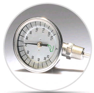 雙金屬溫度計,可以在各種生產過程中直接測量-50+ 500范圍內的液體、蒸氣和氣體介質的溫度。其工作原理是將帶螺紋的熱雙金屬用作溫度傳感裝置,并將其安裝在保護套中,保護套的一端是固定的,稱為固定端,另一端連接到細軸(稱為自由端)上。線軸自由端有一個指針。當溫度變化時,溫度傳感裝置的自由端隨之旋轉,驅動細軸上的指針產生角度變化,并且相應的溫度顯示在刻度盤上。它可以與各種安裝殼體結合使用,以滿足不同溫度水平的要求。