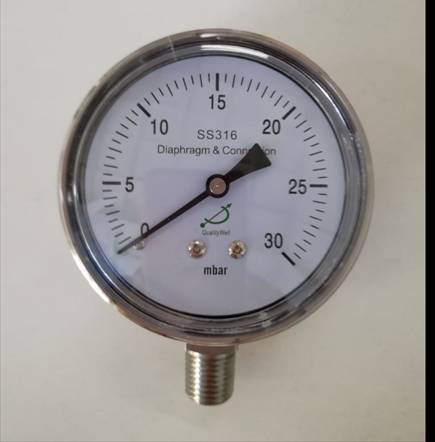膜盒壓力表中膜盒敏感元件由兩塊連接在一起的顯圓形波浪的膜片組成。測量介質的壓力作用在膜盒腔內側,由此所產生的變形可用來間接測量介質的壓力。壓力值的大小由指針顯示。膜盒壓力表一般用來測量氣體的壓力,并能測量微壓、過壓保護在一定程度上也是可以的。當幾個膜盒敏感元件疊在一起后會產生較大的傳遞力來測量極微小的壓力。膜合壓力表主要測量對銅合金不起腐蝕作用、無爆炸危險氣體的微壓和負壓,廣泛應用于鍋爐通風、氣體管道、燃燒裝置等其他類似設備。