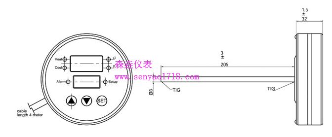 測溫桿長:200mm, 直徑:8mm