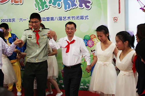 森垚儀表童副總與成佳學校學生們一起載歌載舞