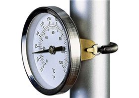 是的,有一種稱為“管道溫度計/pipe thermometer”或者“表面溫度計/surface thermometer”的溫度計可以直接安裝在管道上讀取溫度。這種溫度計通常由一個圓盤式的溫度計和一根彈簧組成,通過彈簧綁定在管道上測量溫度,所以也稱為彈簧表面溫度計。通過溫度計背后銅材質的溫度傳感器與管道表面充分接觸,測量管道表面金屬的溫度,這種管道溫度計廣泛用于工業管道系統中的溫度監測和控制。